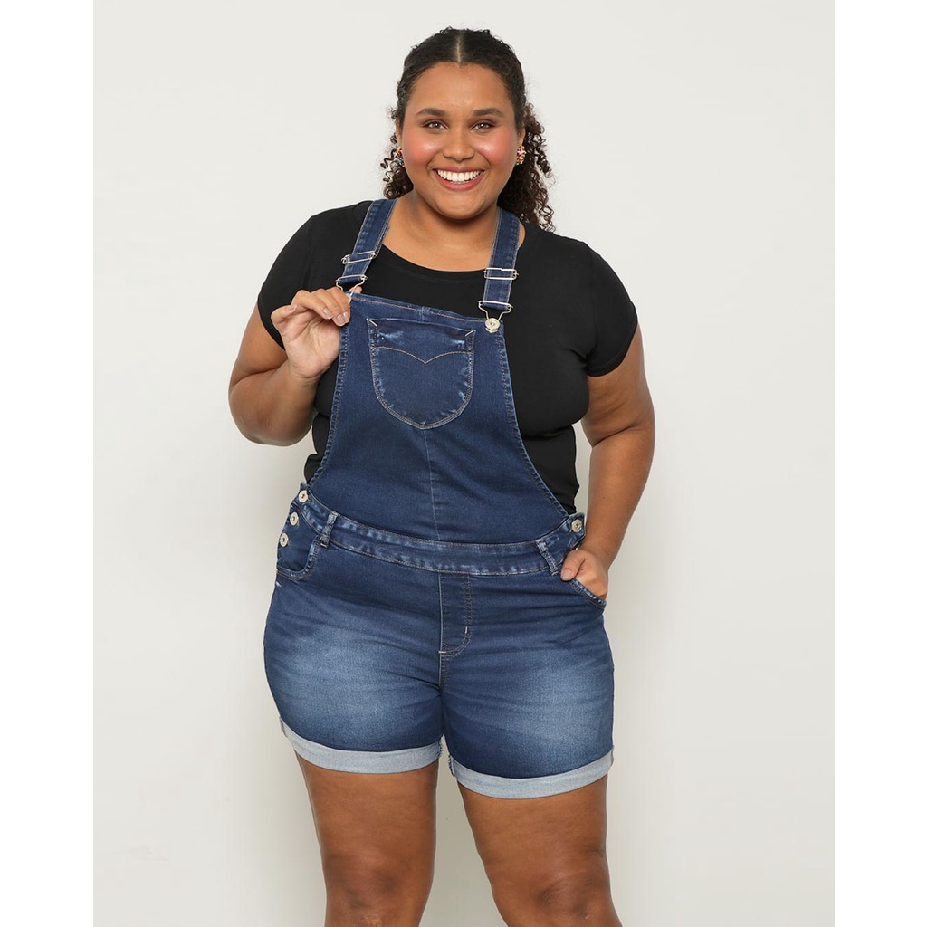 Jardineira jeans sawary plus size cheap feminina